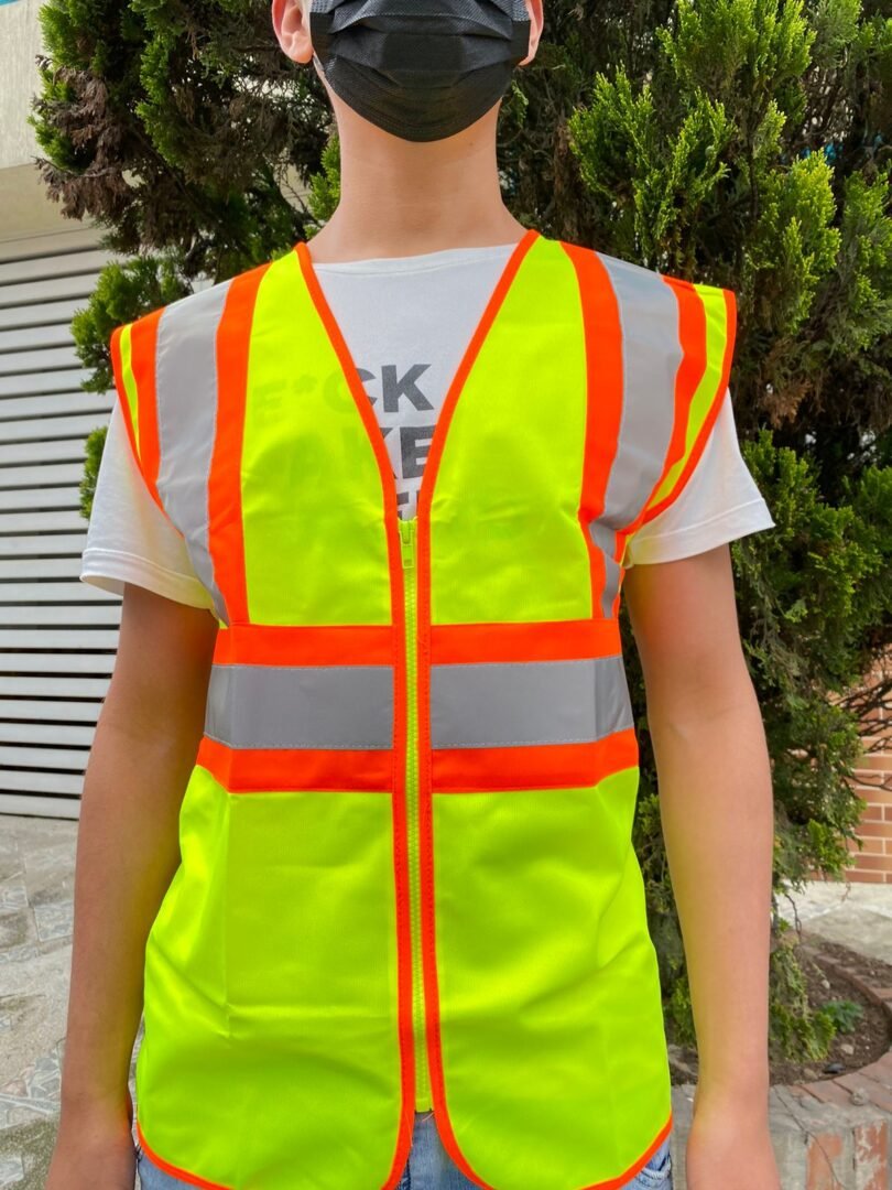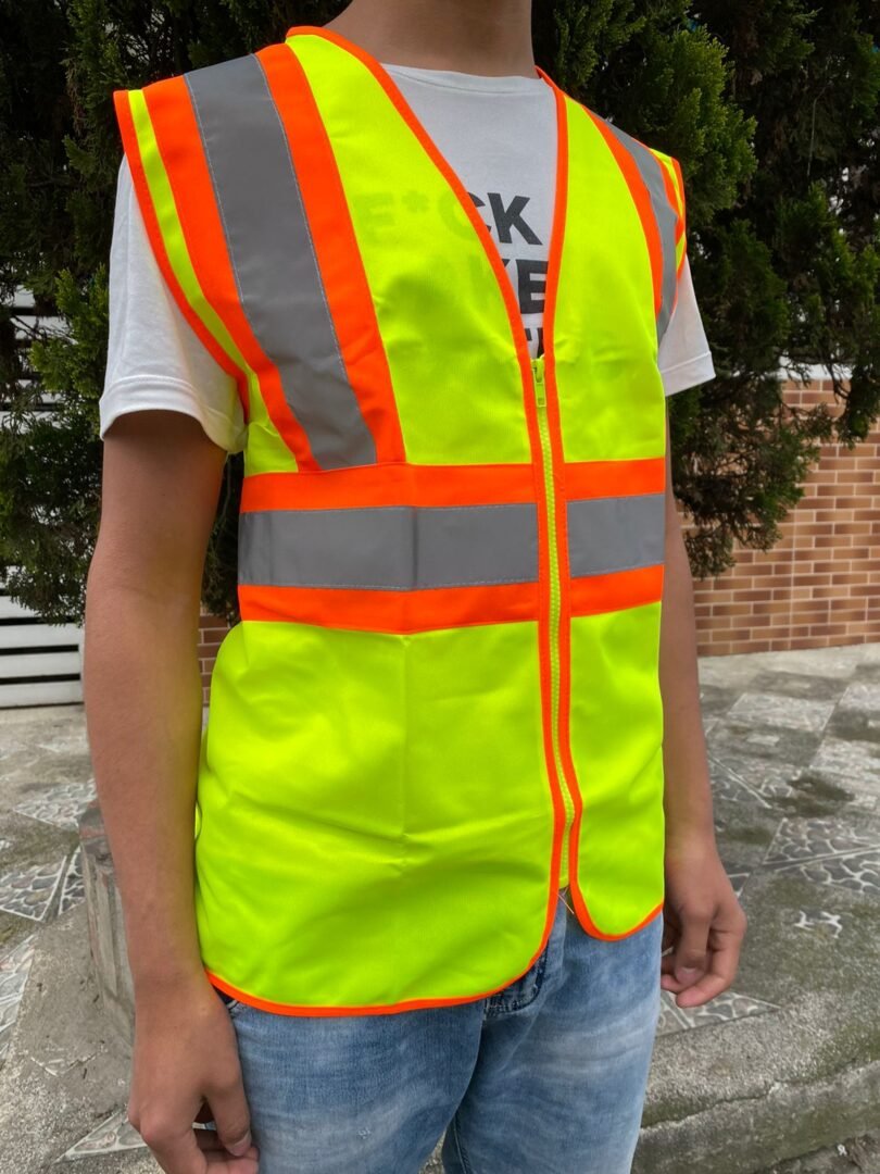 Chaleco reflectivo tejido tipo rejilla (malla) de alta tenacidad. Para usos en trabajos en vías públicas, construcciones, parques, eventos, policías, ambientes cálidos en general, entre otros. Por su tejido, son más livianos y ventilados, lo que permite una mejor transpiración. Visible desde larga distancia, ya que posee bandas reflectivas de 50 mm de ancho y 400 candelas de reflexión, tal como lo señalan las Normas de Cumplimiento Vial. Posee dos (2) bolsillos al frente, en la parte inferior, para mayor comodidad.