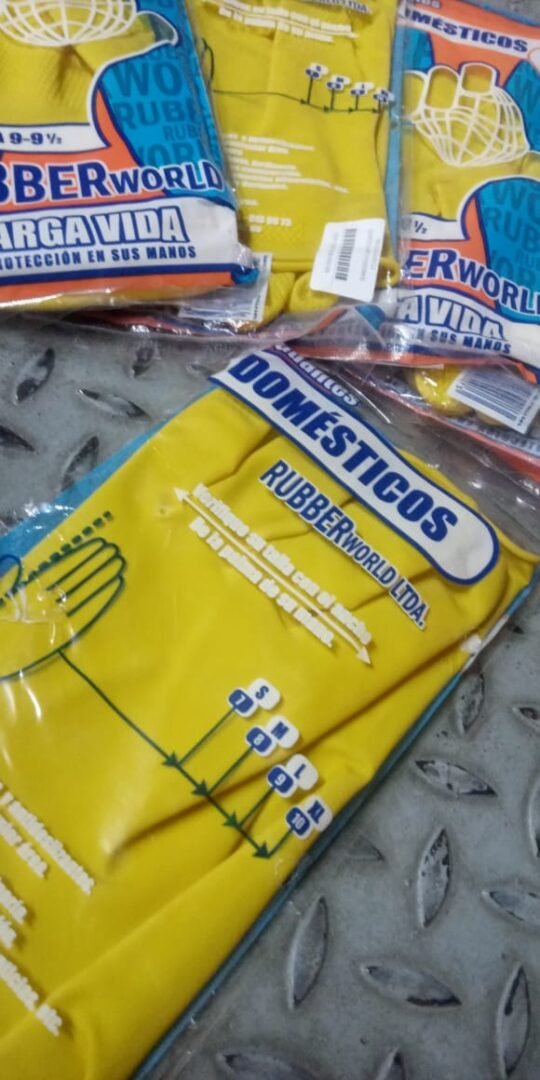 Guante Domestico, color amarillo, antibacteriales, antialérgicos, clorinados, anatomicos, labrado profundo, rollo en manga.
