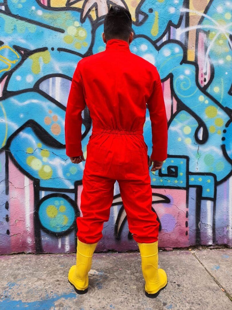 Overol enterizo en drill, cuello militar con manga larga,  tiene seis bolsillos: dos bolsillos con cremallera en la parte de la camisa, dos bolsillos en el delantero del pantalón y dos bolsillos en la parte posterior, elástico en la cintura, sistema de cierre por cremallera.
